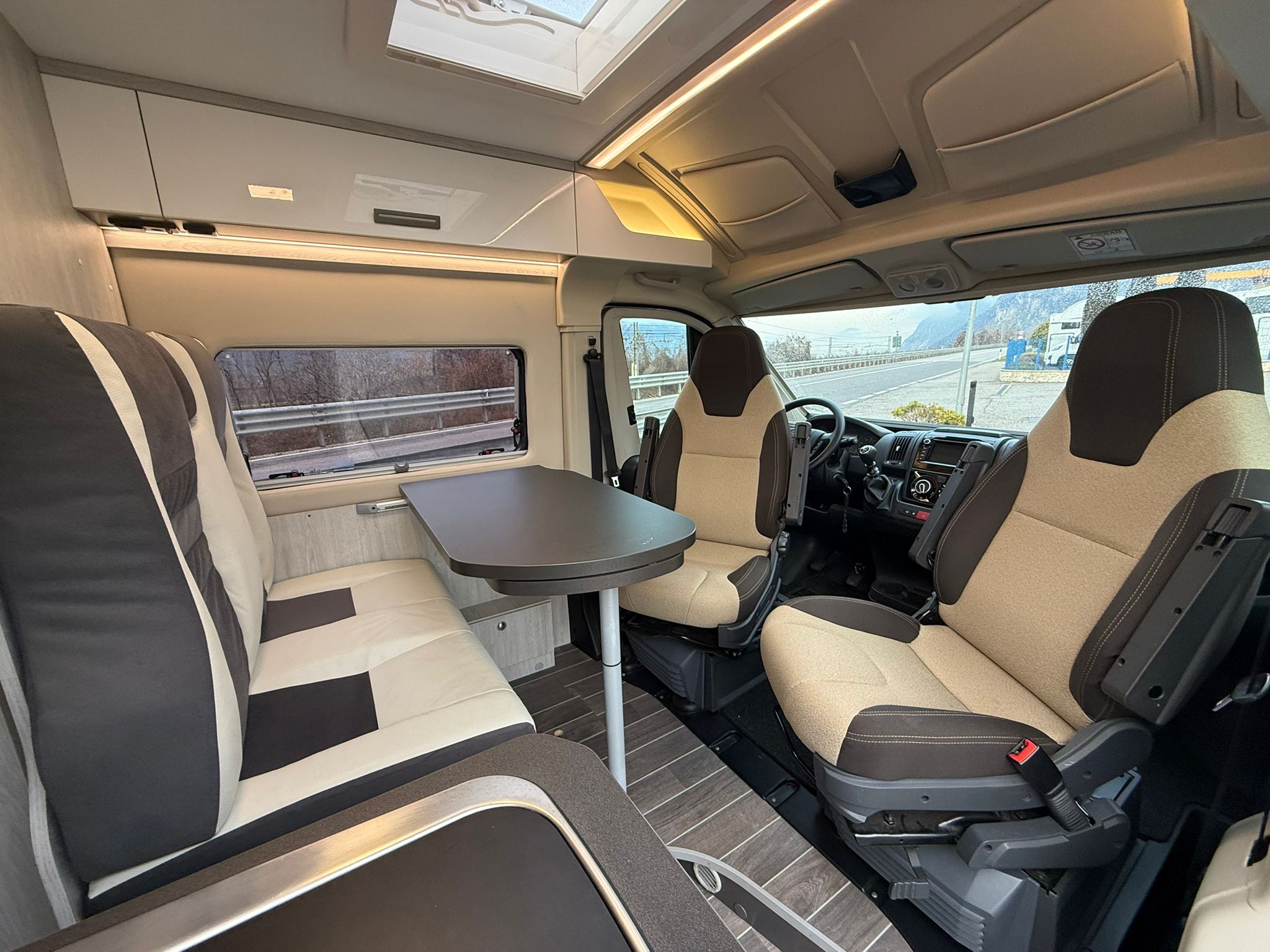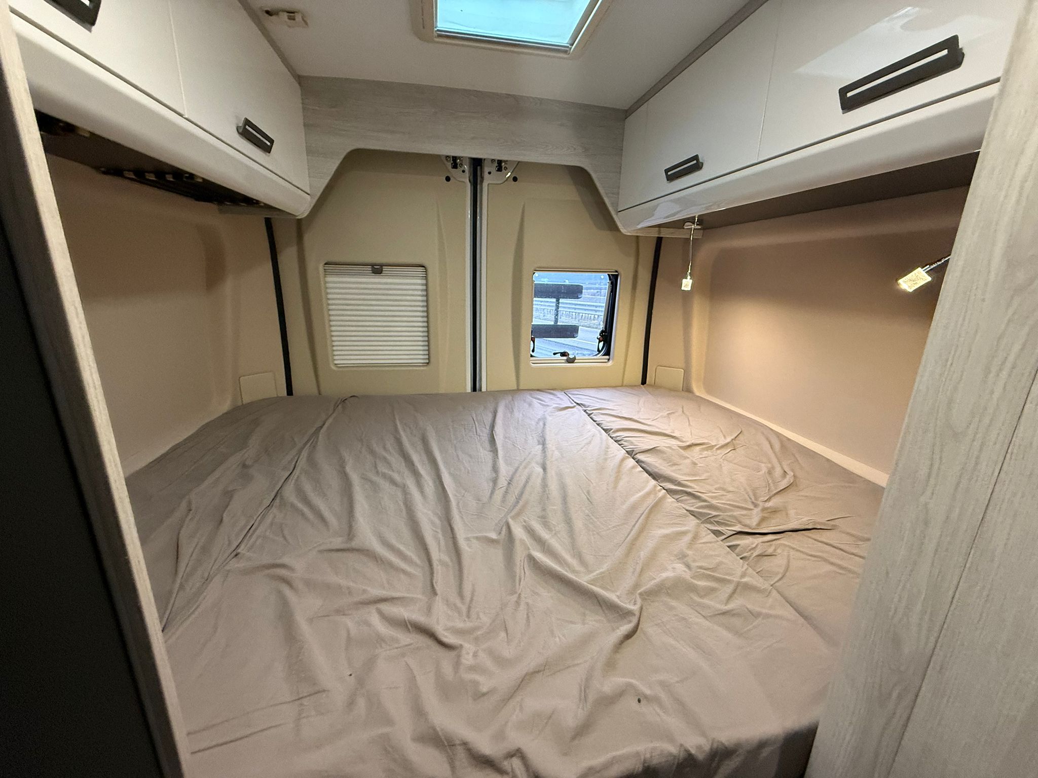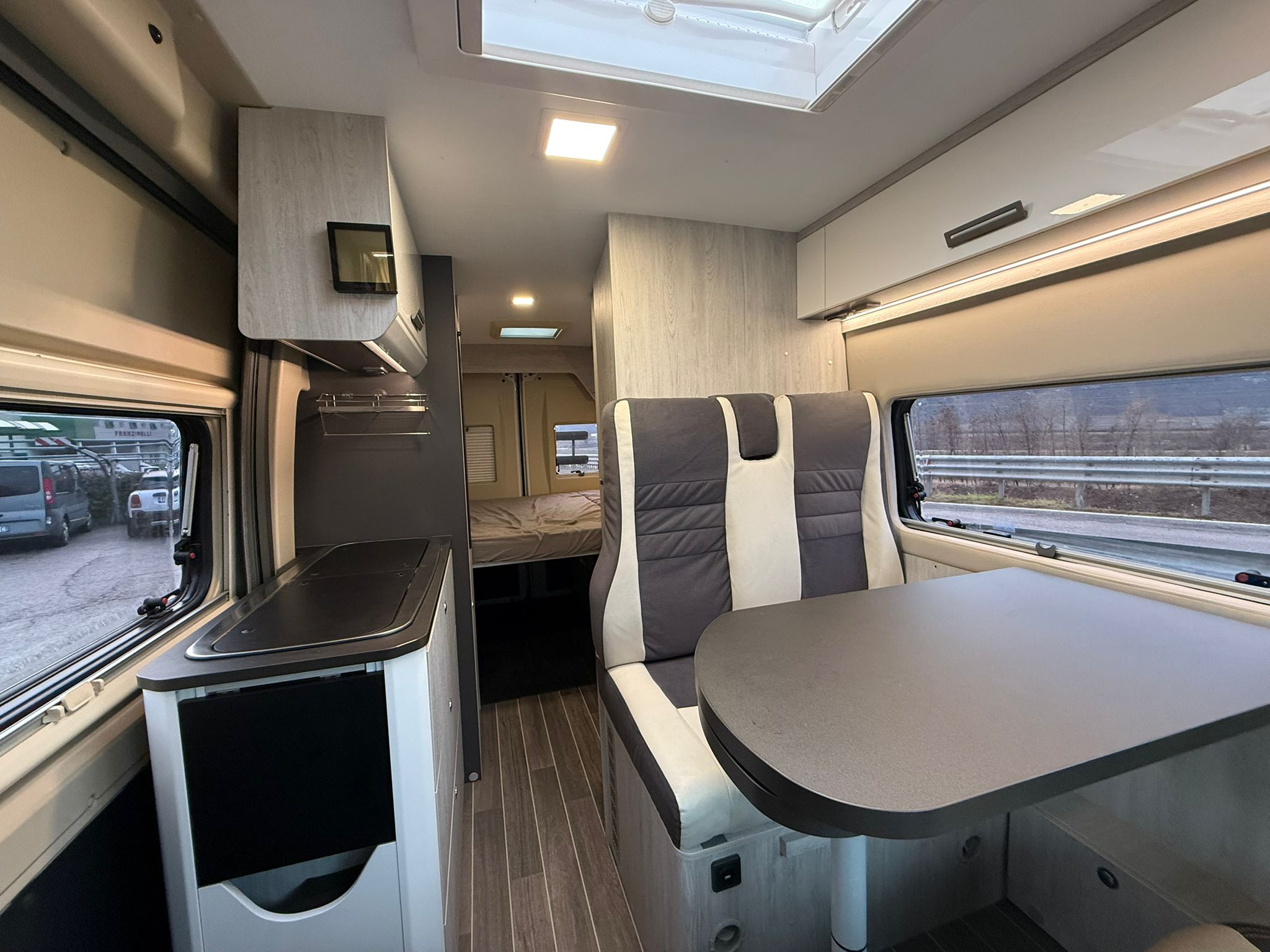 CLIMA MANUALE, CRUISE CONTROL, GRIGLIE FRONTALI NERE, FARI CON FINITURE NERE, TENDALINO ESTERNO, PANNELLO SOLARE, AUTORADIO, RETROCAMERA, OSCURANTI PLISETTATI CABINA, CERCHI IN LEGA 16’’ FIAT, PANNELLO SOLARE