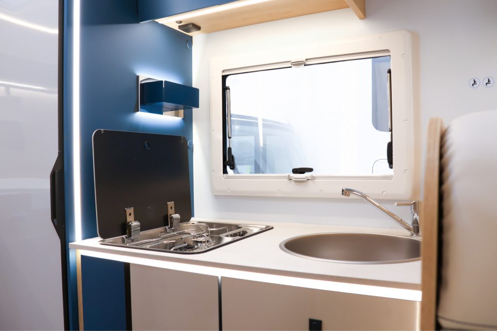 PACK HORON FORD (Ford Transit 2.0 l 165CV ,Fari "High Series" con luci di svolta statiche, Vano portaoggetti con serratura, Finiture cruscotto "Trend«, Paraurti e modanature laterali verniciati in tinta con la carrozzeria, Porta Cellula con 2 punti di chiusura, con finestra e chiusura centralizzata, Pannello di controllo CP-Plus, Coprilavello/tagliere, Pannello solare da 200W con regolatore MPPT, Skyroof, Oscuranti cabina plissettati, Coprisedili cabina) DI SERIE