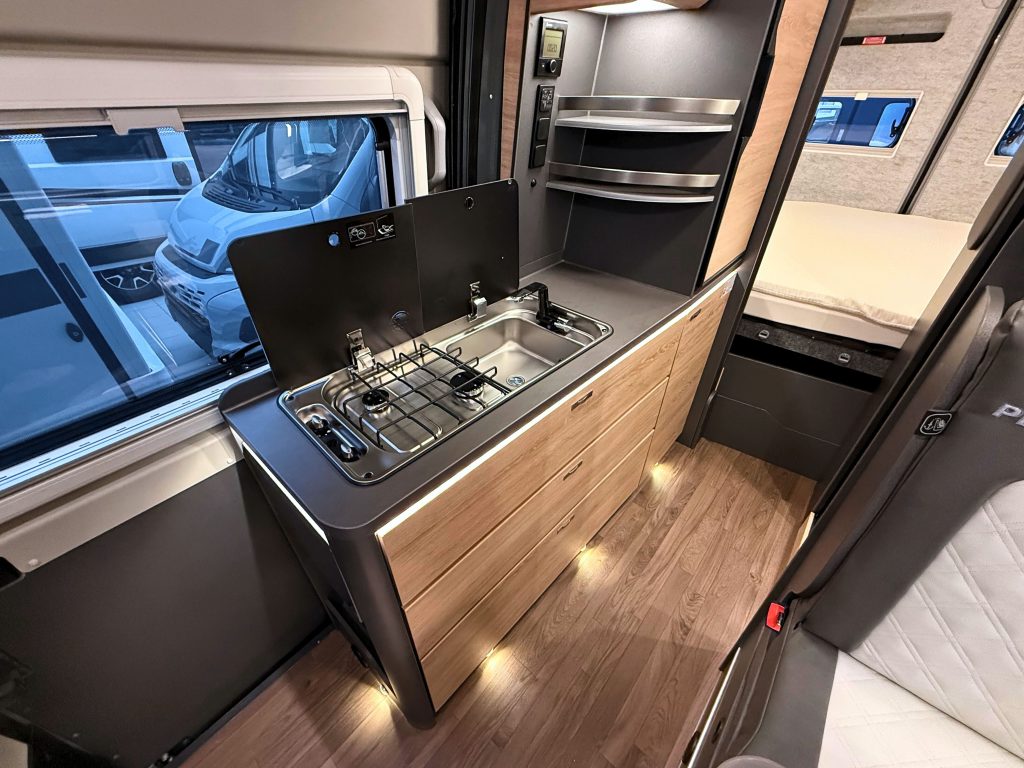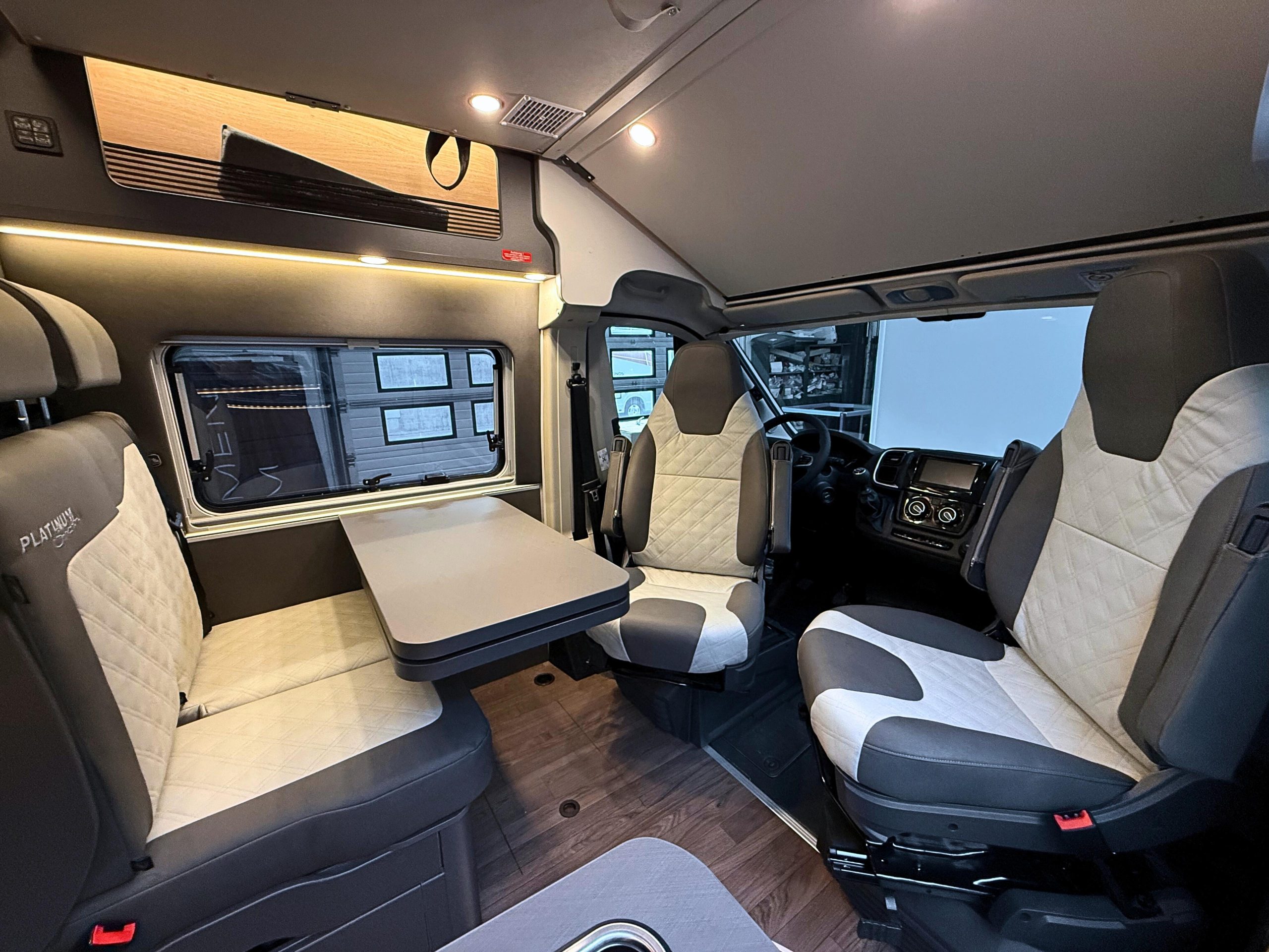 Predisposizione per fotovoltaico • Topper per materasso • Lampade leggilibro in cabina guida • Comando digitale TRUMA CP-Plus per il riscaldamento • Cruscotto con design Techno (color alluminio) • Presa 12 V (1 pezzo) • Presa SCHUKO 230 V supplementare (1 pezzo), parte posteriore • Presa SCHUKO 230 V supplementare (1 pezzo), nel pensile, parte anteriore sx • Luce di lettura a collo di cigno nella zona giorno, incl. presa USB • Predisposizione cavi per sistemi satellitari • Presa USB (1 pezzo), nel vano toilette • Serigrafia speciale “PLATINUM SELECTION”...