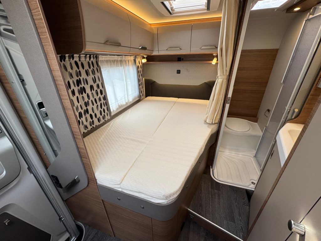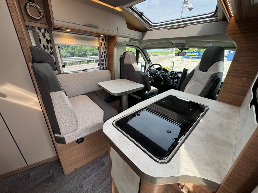 Dinette ad L munita di tavolo telescopico con gamba centrale (ripiano orientabile verso tutti i lati) • Predisposizione radio incl. 2 altoparlanti nella zona giorno • Serbatoio di recupero acque grigie coibentato e riscaldato • Volante e pomello del cambio in pelle stile tecno • Fendinebbia anteriori con luce di svolta • Prolunga ai piedi del letto, solo per piantine con letto F • Comando digitale TRUMA CP-Plus per il riscaldamento • Cruscotto con design Techno (color alluminio) • Presa SCHUKO 230 V supplementare, in cucina (1 pezzo) • Serbatoio carburante da 90 litri...