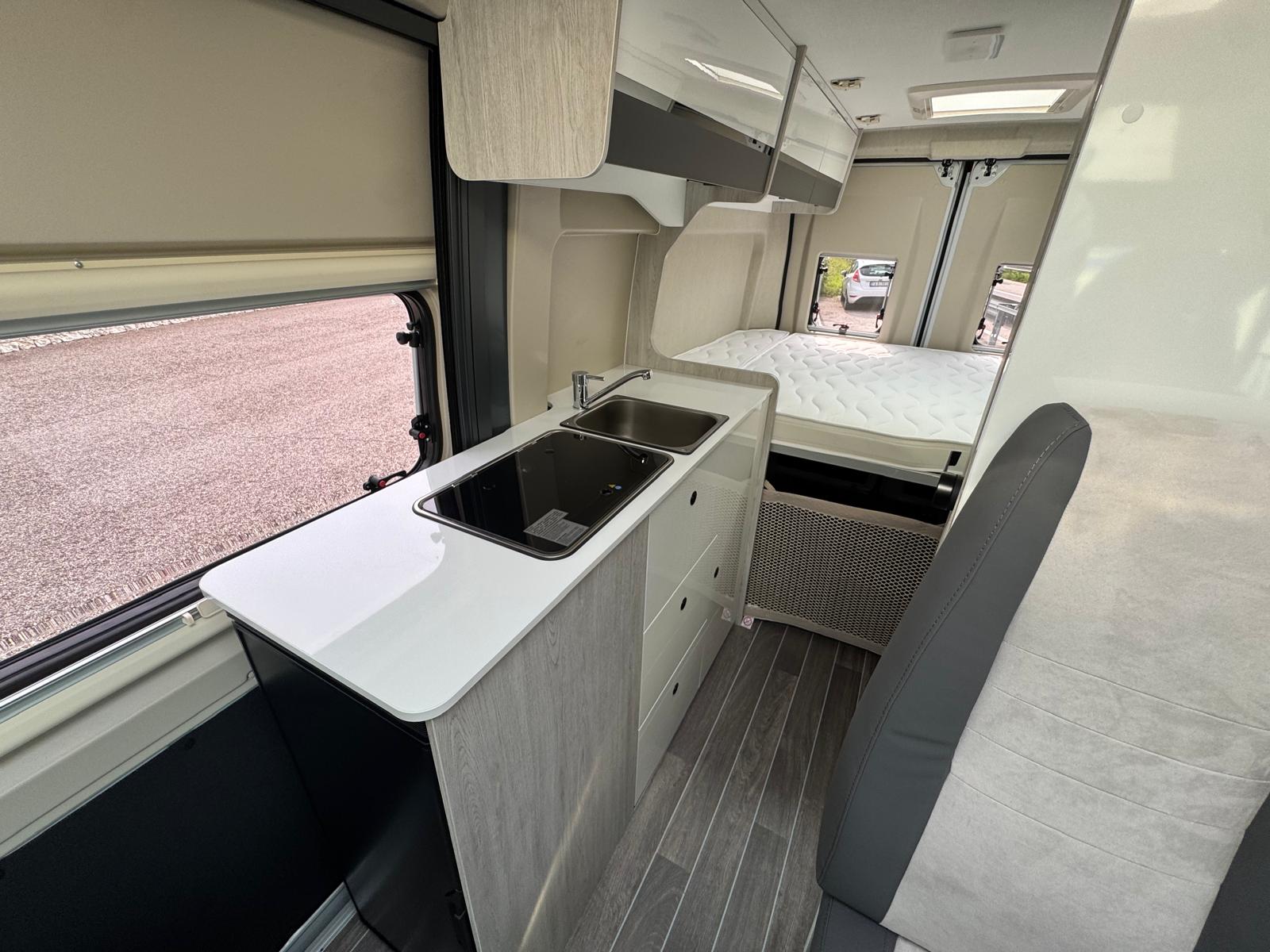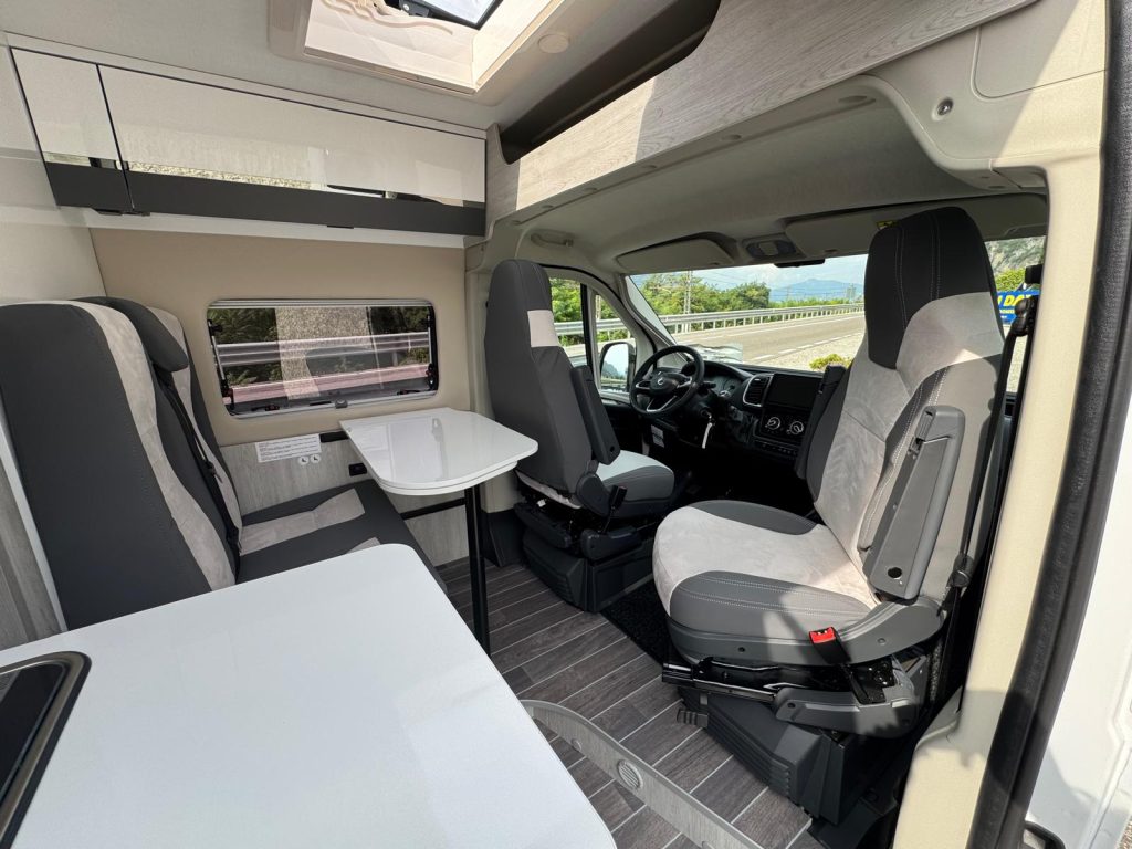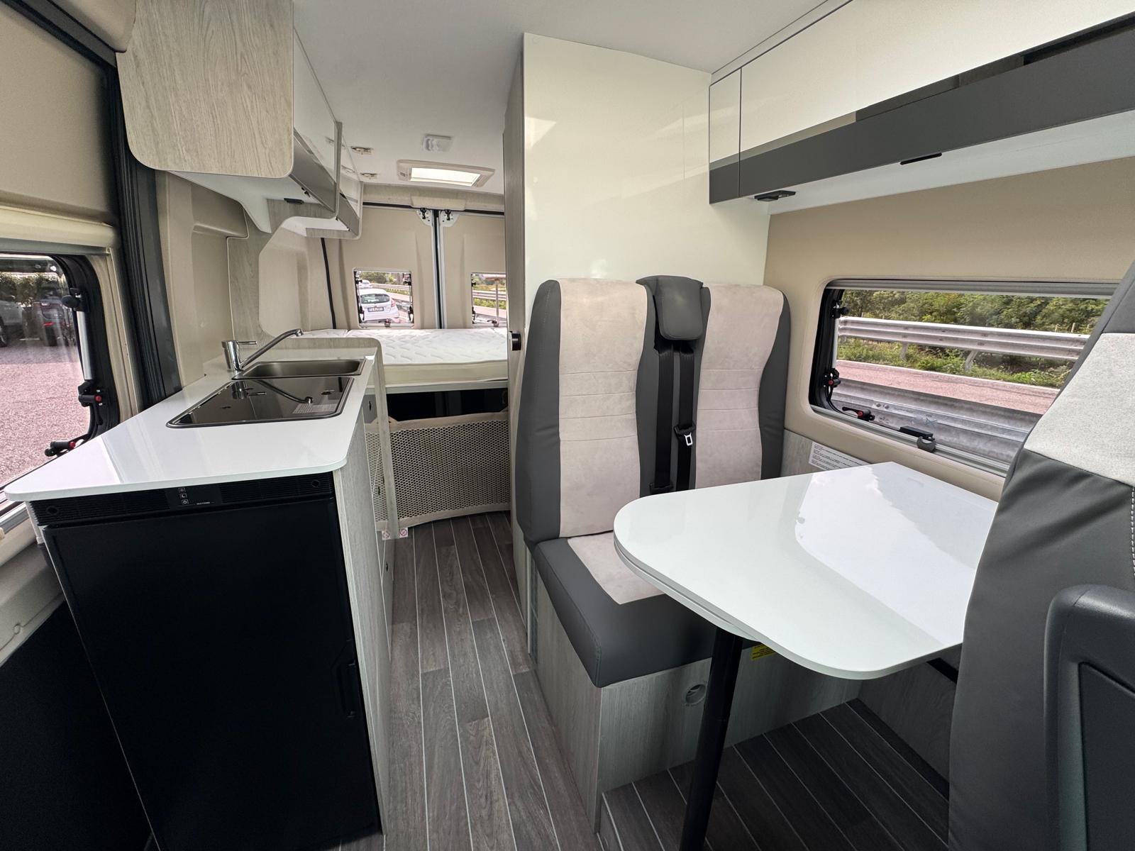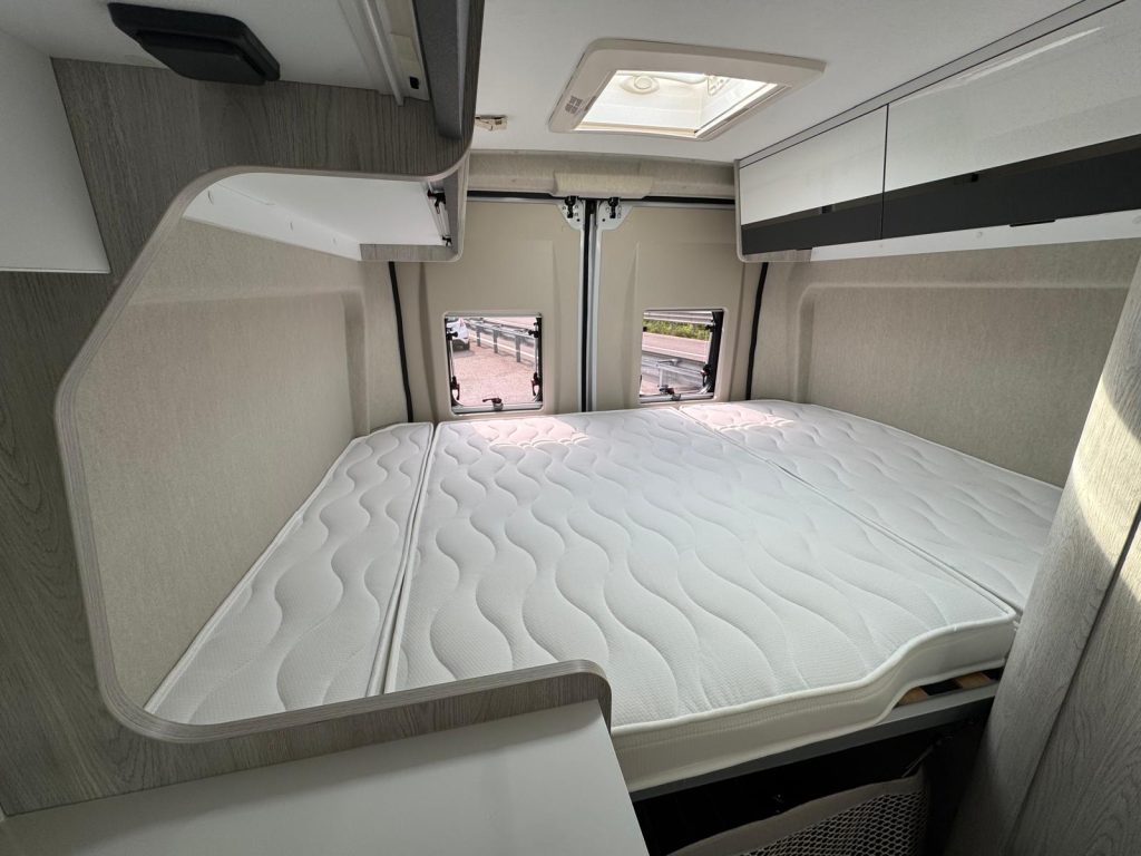 Climatizzatore Manuale cabina, Air Bag Guidatore & Passeggero, Sedili girevoli cabina guidatore e passeggero, Serbatoio gasolio 90 L., Start & Stop, Prese di ricarica USB, Specchietti retrovisori riscaldati elettricamente, Predisposizione antenna radio DAB+, Riscaldamento Combi 4 Diesel, Frigorifero a compressore 84 L., Reti letto con doghe in legno, Pannello solare 200 W