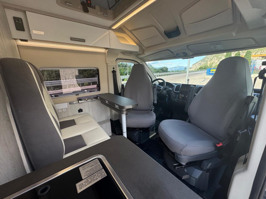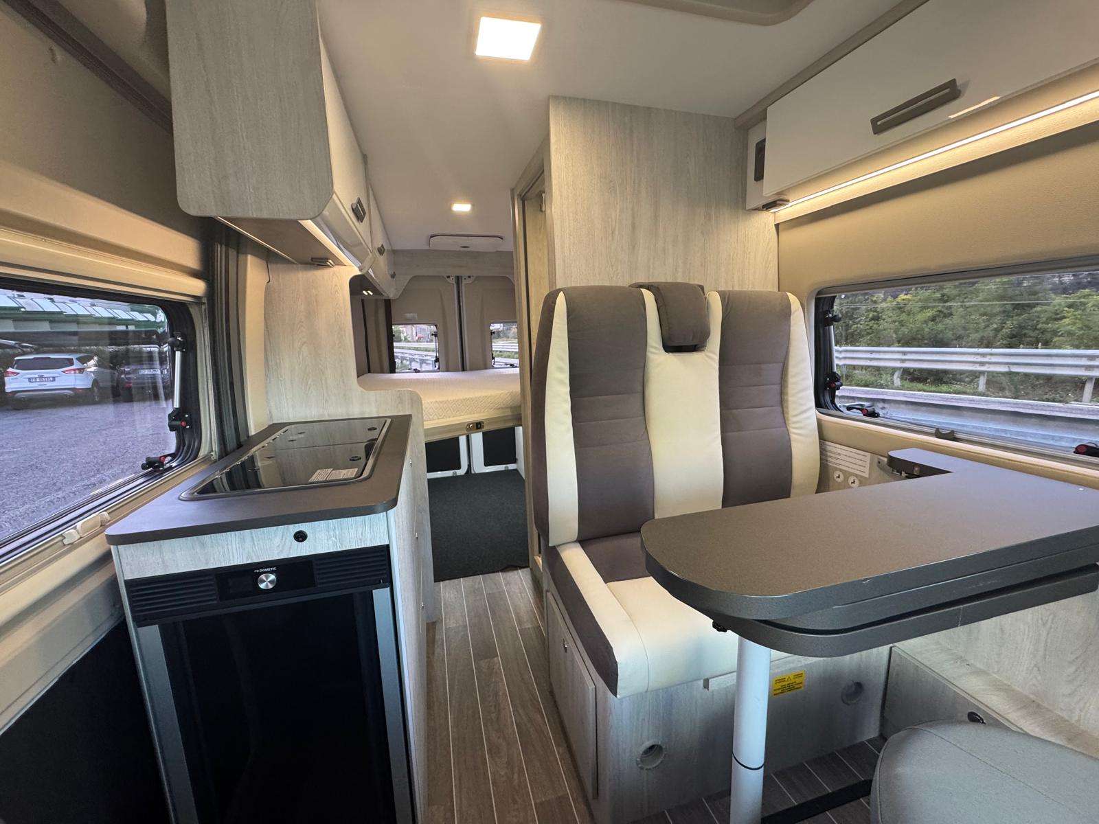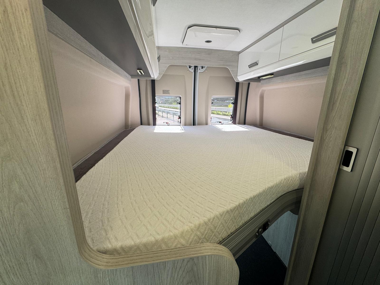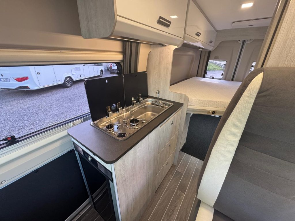 Climatizzatore Manuale cabina, Air Bag Guidatore & Passeggero, Sedili girevoli cabina guidatore e passeggero, Paraurti anteriore verniciato, Techno Trim, Griglia frontale nera – Skid Plate nero, Cornice fari nera, Radio capacitive touch screen 9’’ Android Auto/Apple Carplay Wireless con comandi al volante, Piano cottura a 2 fuochi, Posto letto aggiuntivo in dinette, Prese USB zona giorno e zona notte, Reti letto con doghe in legno, Luce esterna a led